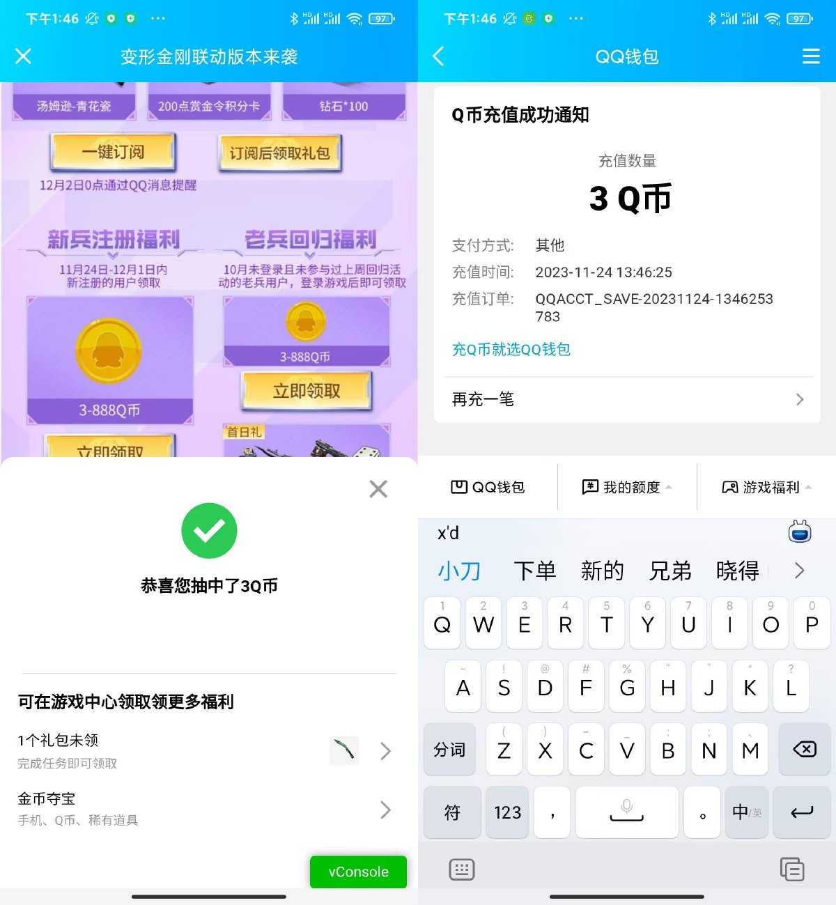 QQ打开地址->回归用户或新用户登录游戏->返回页面领3Q币活动地址:https://tb3.cn/ApL1cO
