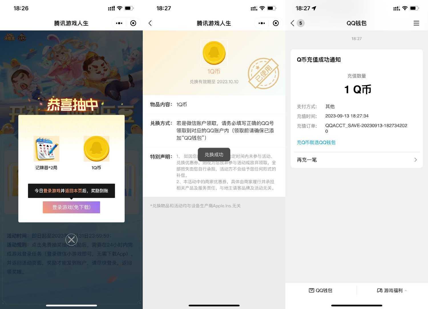 微信打开地址->如果抽中Q币就登陆游戏->然后关闭游戏直接返回兑换即可