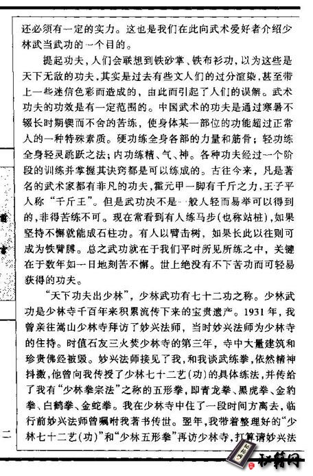 本书所介绍的是古时传留下的功法,在少林寺、武当山的历史文化资料中均记载甚详。其功法是否可行及是否符合科学性,我们未进行考证,而且有些功法不符合时代的要求,还有些功法.如抱树功、铁扫帚功对树木是一种破坏,不可仿效。对书中介绍的练功方法及洗药处方应持慎重态度,亦不可育目仿效,以免发生伤害事故。但为了挖掘整理传统武功,为研究中华武艺之演变、考证武术历史发展的需要,将其整理成册出版,仅供参考。