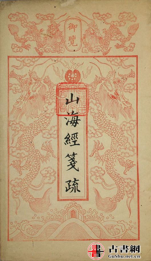 此《山海经笺疏》为清光绪时期还读楼刊本。内容含:上谕、奏折、校刊山海经笺疏序(宦懋庸撰)、校刊山海经笺疏序(蔡尔康撰)、重刻山海经笺疏后序、刻山海笺疏序(阮元撰)、山海经笺疏叙、山海经叙录及以上十八卷,后附山海经图赞、山海经订讹。