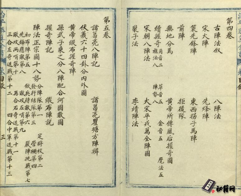 《治平胜算全书》是清代军事著作。12卷,约15万字,阵图、兵器图455 幅。该书内容取孙吴兵法、《太白阴经》、《虎钤经》、《武经总要》、《武备志》等书。