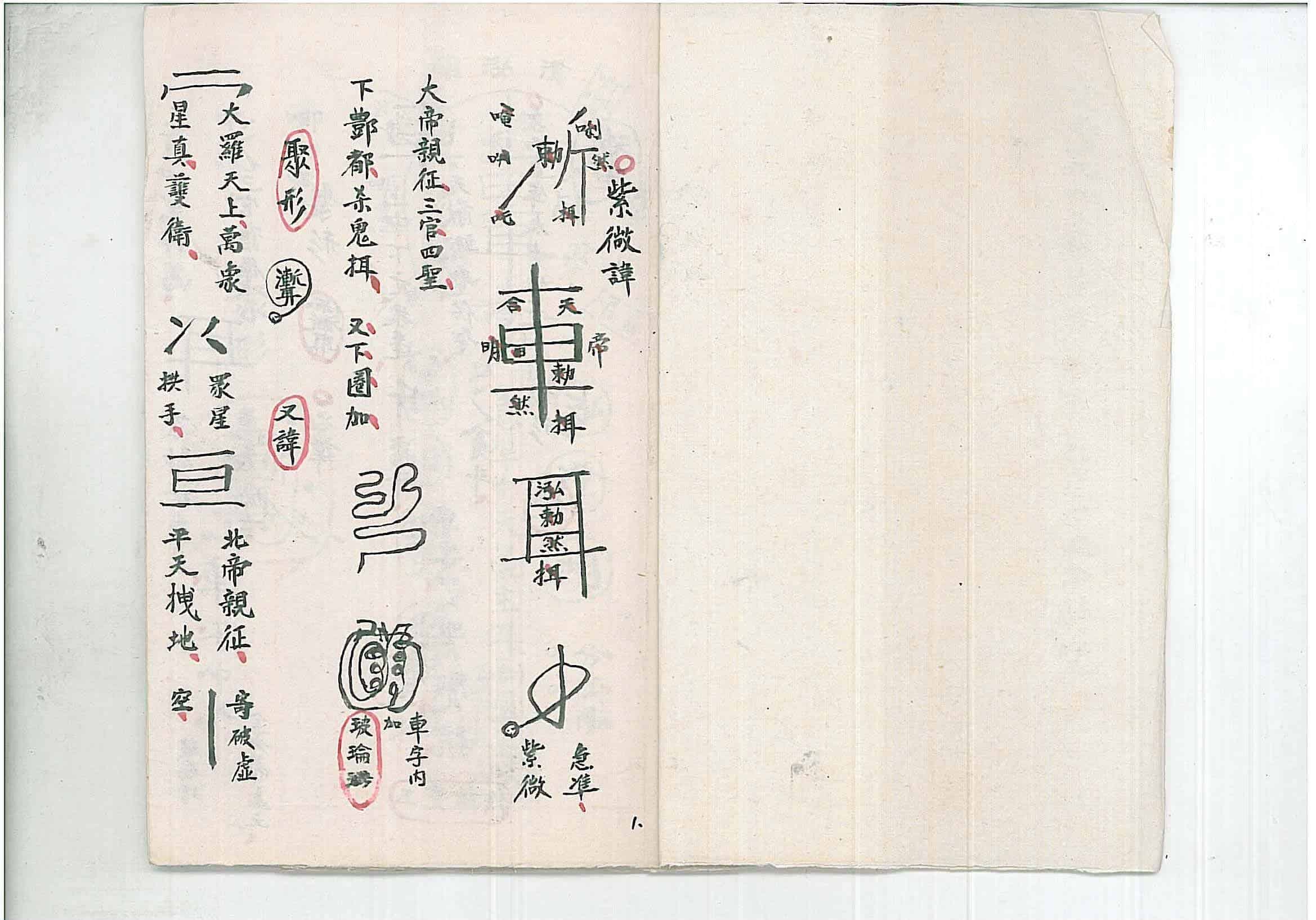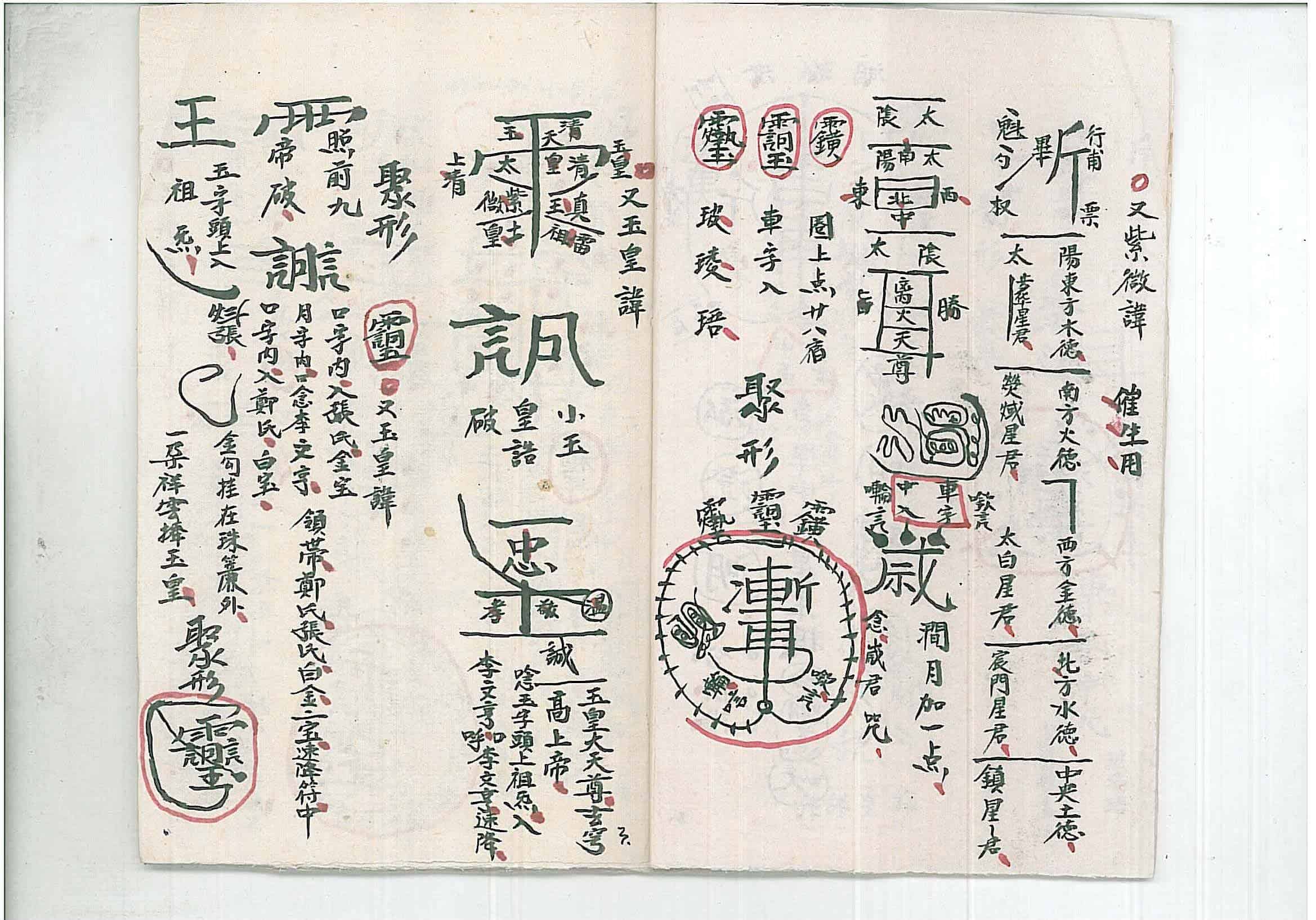 内容包括:紫微讳、聚形、又紫微讳催生用、又玉皇讳、聚形、又天皇讳、又六帝伞、又九清九帝总伞、又天帝玄机、又祛邪紫微架然放箭妙秘、又玉帝排驾妙、又总召讳、又小牌金讳、又起退土犯符式、又截虐符、又治虐画饼法、又镇土即煞符等等。
