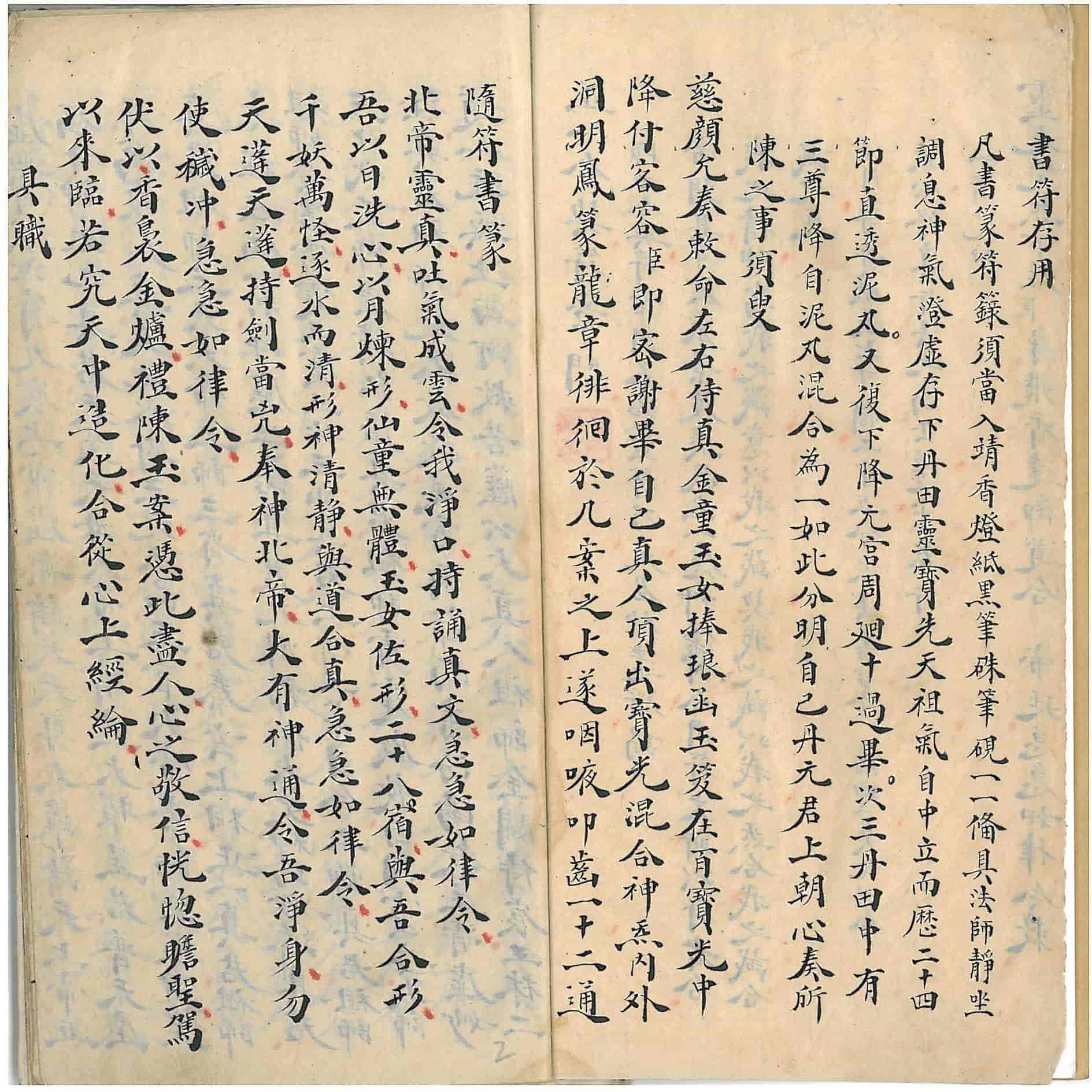 《正一合契符章门》,该套符法传自大光明殿娄近垣真人一脉,珍贵孤本手抄,全本共32个双面,合计64页。