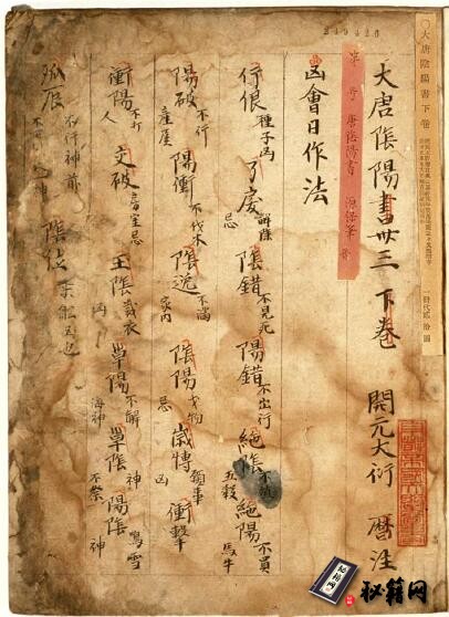 日本保存的最重要的占卜典籍之一《大唐阴阳书》
