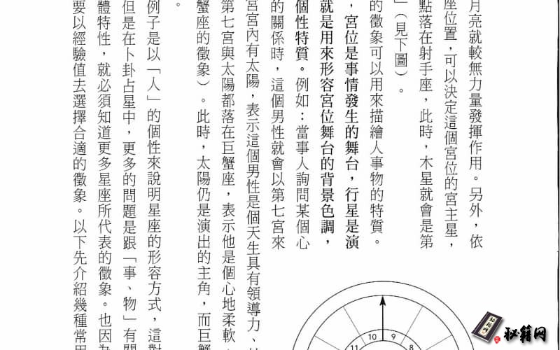 認真殷勤地實證,遂能深入堂奧。 當二十世紀中葉吹起現代心理占星學的新浪潮,極為嚴厲地批判古典占星的宿命觀點, 及事件判斷的不是,但一些批判者甚至未曾深入古典占星典籍 味盲從附和搖旗吶喊者 居多,或視這些典籍為洪水猛獸,不願觸及。殊不知,二十世紀未,重新整理 些重要占星書籍,發現古典占星技巧有許多準驗之處。拜占星軟體的功能強大,網路、 部落格、臉書的興起,以古典占星學為判斷基礎的職業占星家日益增多,顯見它的技巧經 得起考驗,其中卜卦占星學絕對是諮商的一大利器。 可惜某些研習現代心理占星的人,常囿於錯誤古典占星的價值,而無法親炙它的實用。 古典占星學四大科的基礎內容和判斷法訣幾乎相通,如能從卜卦或擇日著手,較易奠定完整的基礎。尤其是卜卦,可隨時驗證,更能體悟法訣的應用。卜卦著重單一事件的解 答,不若本命整盤論斷的繁複,故要掌握它的精髓並非難事。當各宮事項的判斷能靈活運