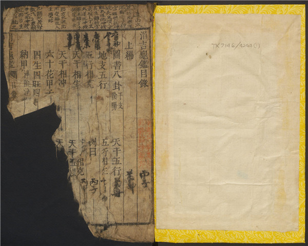 《涓吉龟鉴》,择日类古籍,南元裳[相吉]编辑,林兢渊校正。此书仅前两页的目录页有部分缺损,其他页面基本上完整清晰。