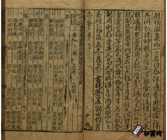 嘉靖版《阴阳选择合并通书大全》17卷 ,明魏佛本纂要, 刘世杰集成, 明嘉靖三十三年书林余氏自新斋刻本。
