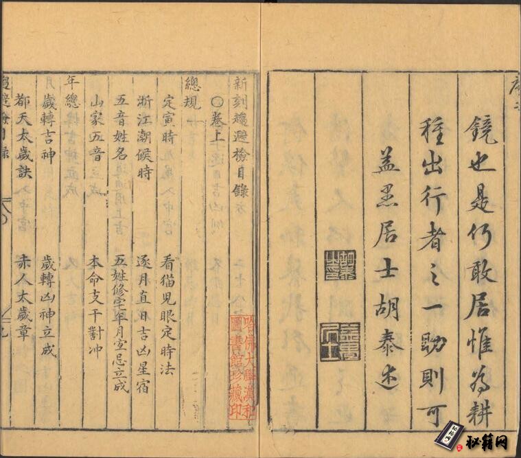 《发微历眼通书大全》,明.胡文焕增释,明万历胡文焕文会堂刊。择吉系列,《发微历眼通书大全》是一本术数玄学地理堪舆风水阴宅阳宅择日古籍,含趋避检、历合览、连珠历、金符经、神会历、选择记、大明历、拜命历、玉厘记九种十二卷,为明万历年间刻本。