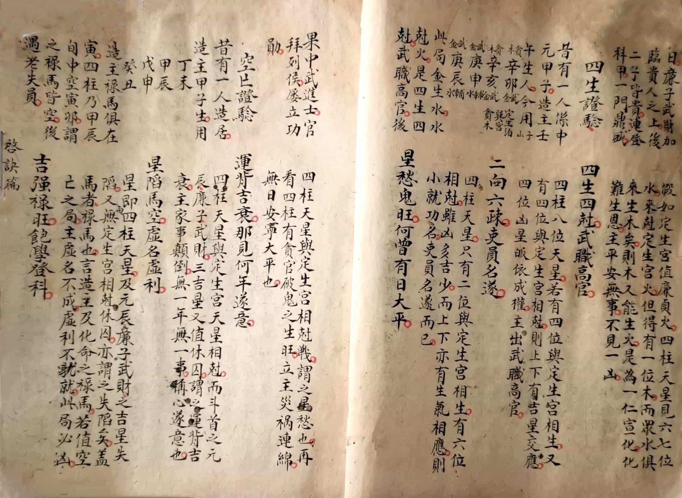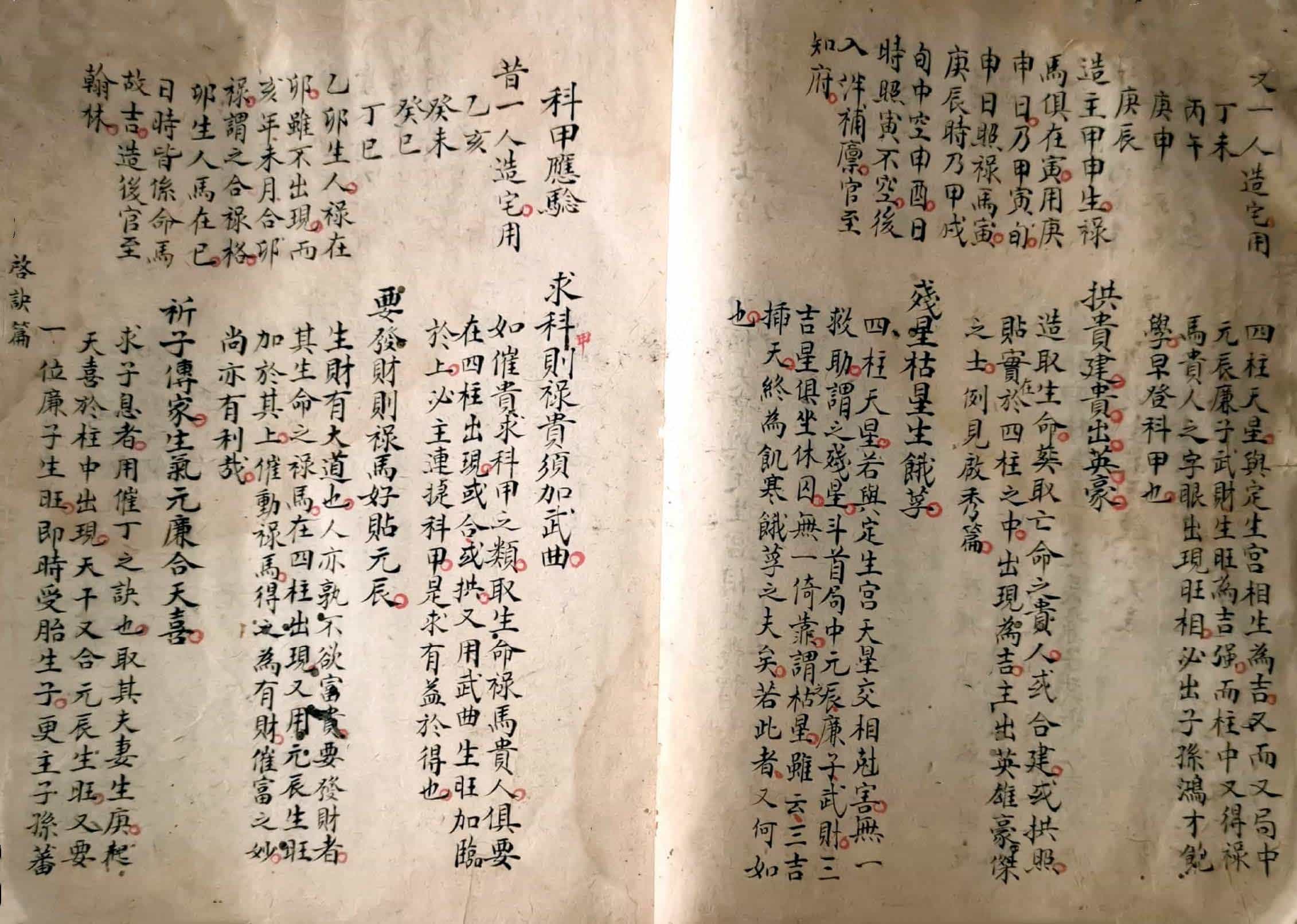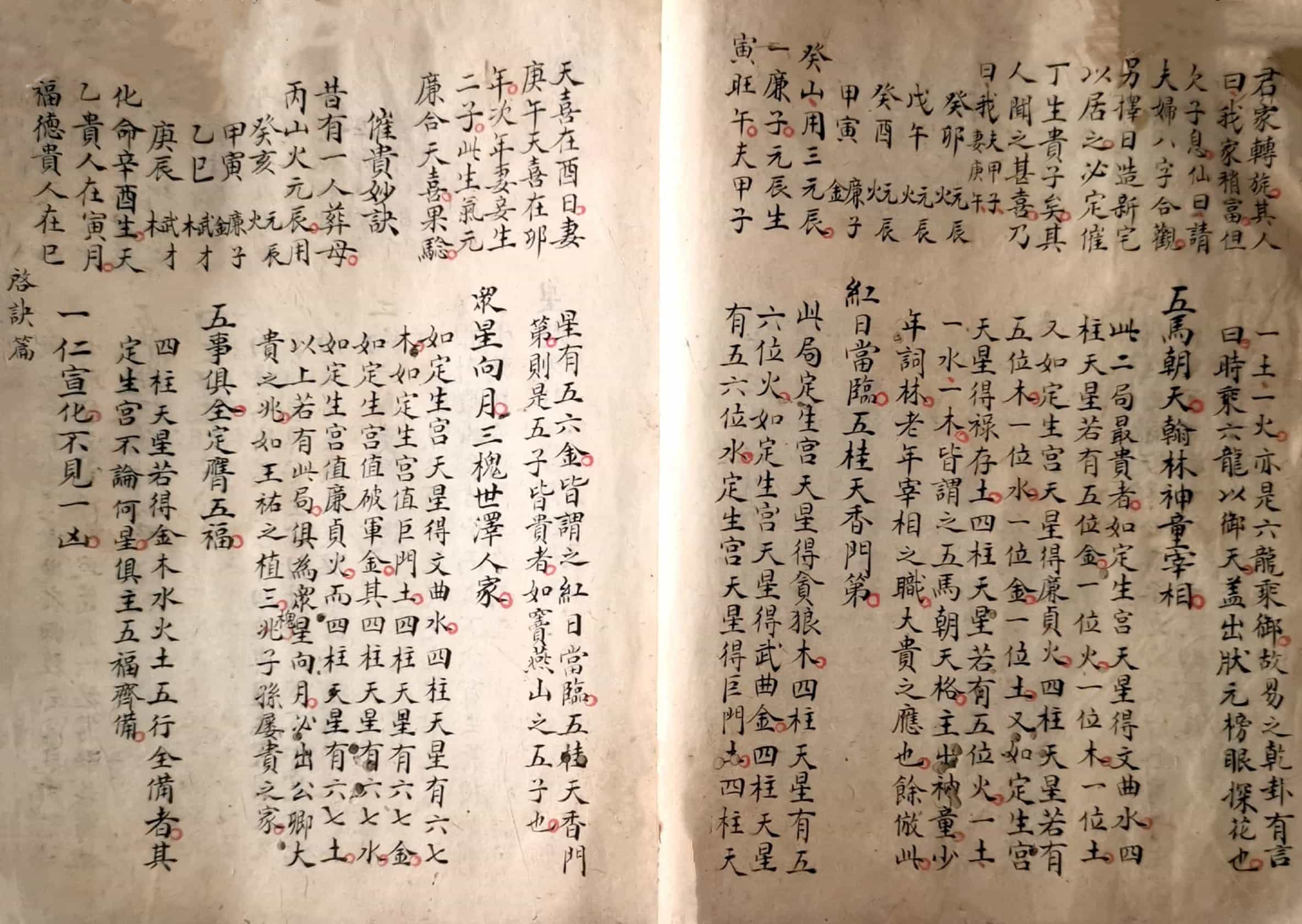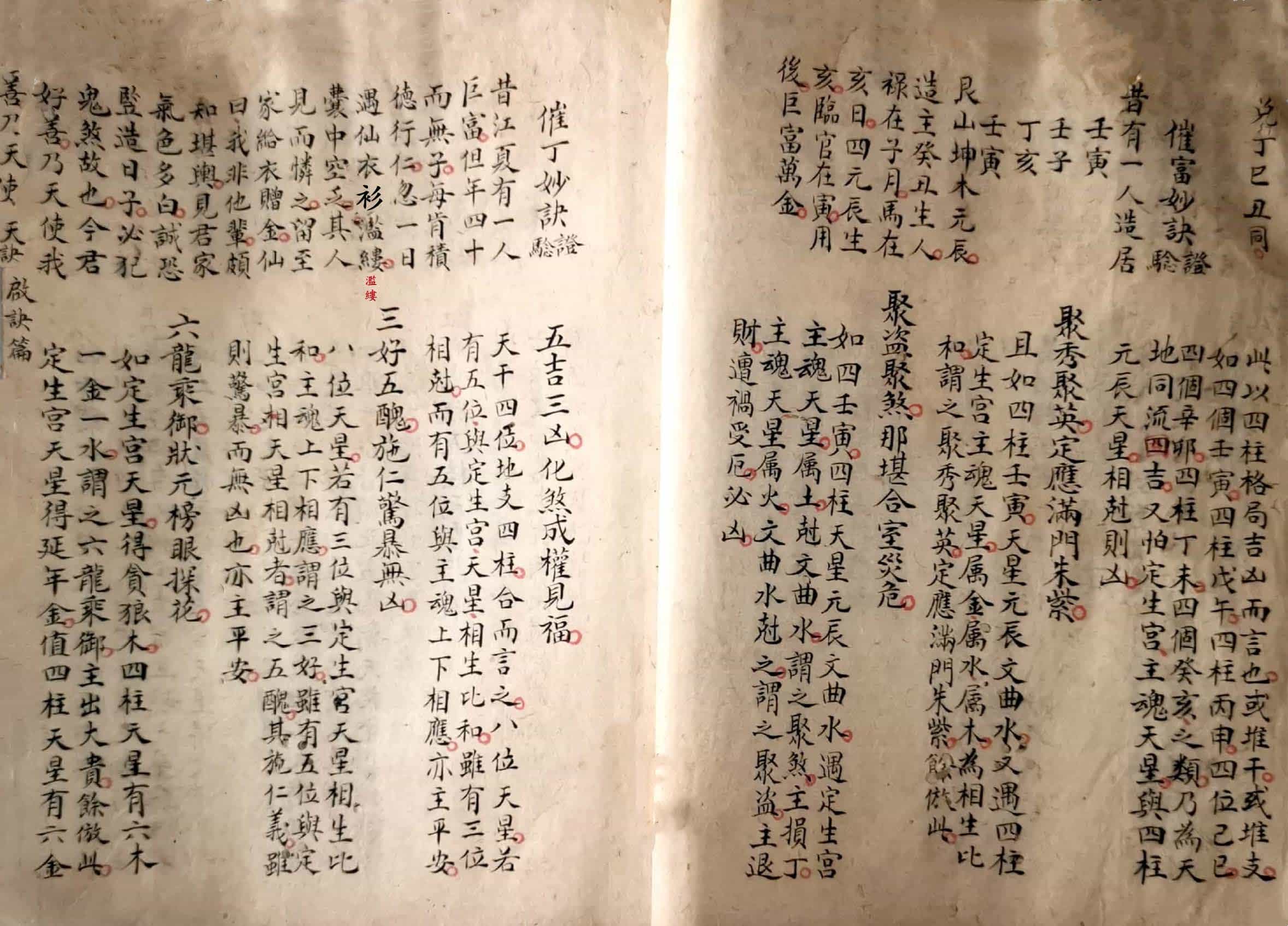 《炉传秘旨》,三元斗首炉传通书秘旨要诀外篇,青云子一叟著,观象子马宽裕良容撰註,全本共36个双面,部分页面有破损和虫蛀。