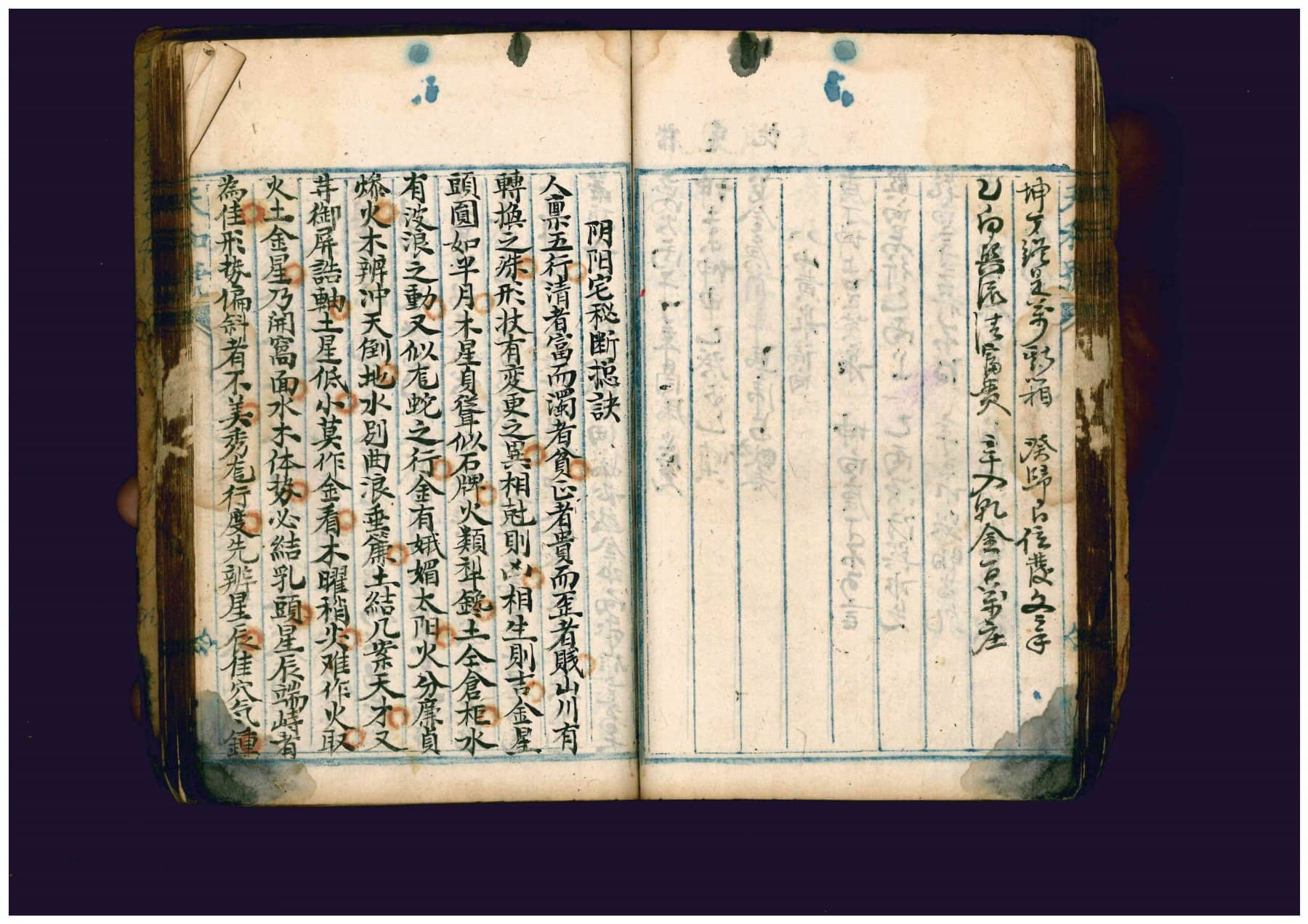 前90页主要内容为择日,包含,论斗首生旺休囚,秘传二十四山精髓择日便览,二十四山劫煞,八山黄泉论向,阴阳宅秘断总诀,阳宅秘断年宅入中宫,协纪较正每月忌用日辰,嫁女轿位坐向吉方,註明各山曜煞消灭,元运配九星秘断,十二条乘病龙歌诀。91页至125页内容为药方,126页之后的内容为符法。