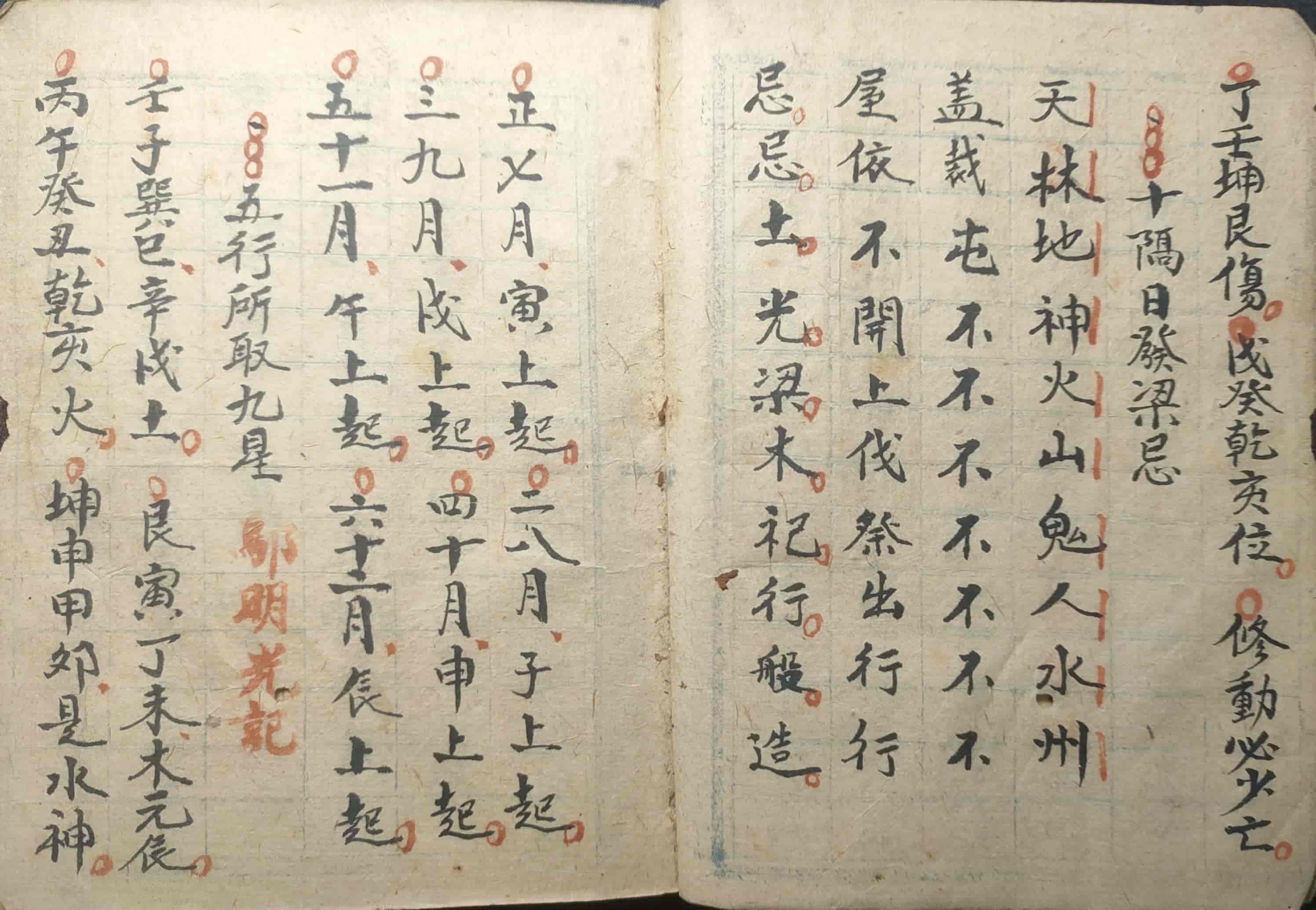 内容包括:斗首日利课,天罡四旺大煞,十隔日发梁忌,五行所取九星,千斤煞,年月日时三煞,傍冷退,杨公所忌地师不取日时,天牛不守塚日,真太岁方最凶忌修,三合会局,阳刃李广箭,五回双山,作灶周堂,不守灶吉期,作灶伏断,安碓磨秘诀,安大小门要合门光星吉,三元合向,颠龙经,六畜安位,九星水法断吉凶,禄存星,艮丙方阴阳二宅门路山向吉凶,廿四山向起长生水法,六壬起例,正绝湮火,的呼杀,阴府歌,六甲胎神,六十年纳音,嫁娶周堂吉忌日等。