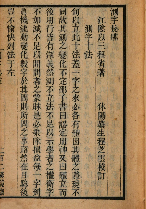 《测字秘牒》清代刻本,程省著,被收录于稀见清代四部辑刊第9辑第050册(子部),术藏第97卷,百二汉镜斋秘书四种其一。