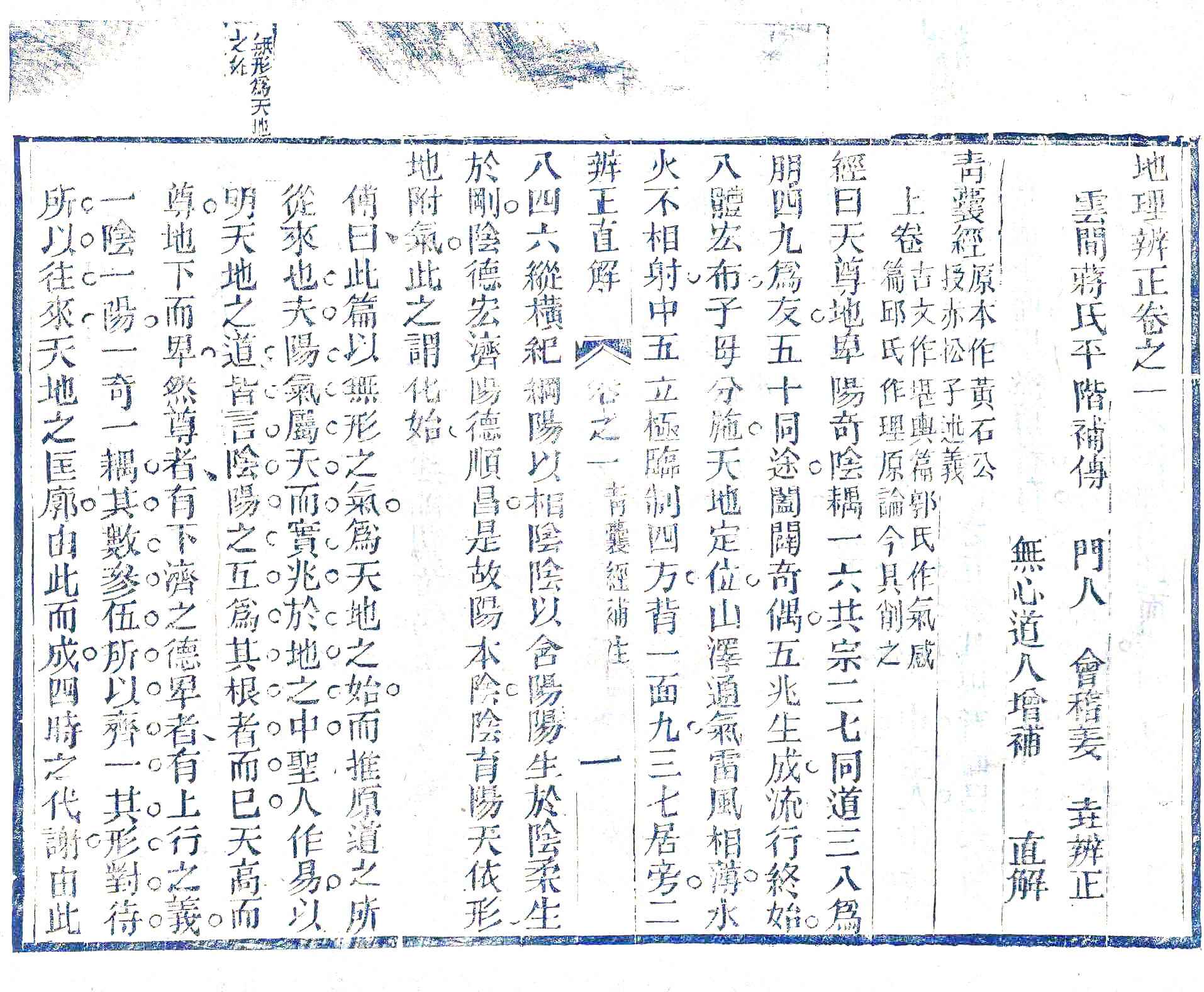 《地理辩正直解》,蒋大鸿著,清道光年间善成堂刻本,内含,(清)蒋平阶补传,心眼指要四卷,无心道人集,天元五歌阐议五卷。此书被收录于术藏第22卷。