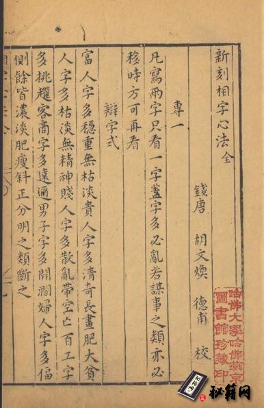 书名:《新刻相字心法一卷》刻印方式:手抄