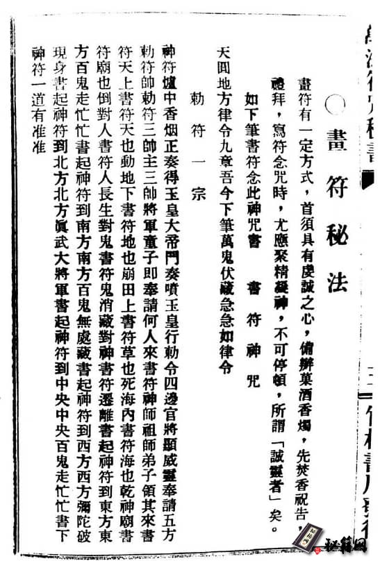 书符有一定方式,首须肯有虔诚之心,备辨果酒香燭,先焚香祝告,礼拜,写符念咒时,尤应聚业凝神,不可停顿,所谓诚心者矣,如下笔书符念此神咒书