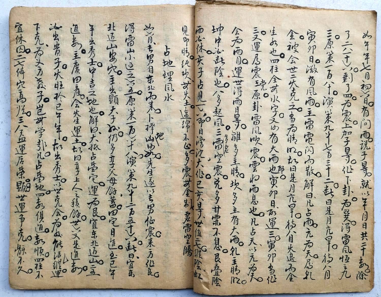 稀见清代神奇占卜手抄秘本《卜易神鬼测》一册全,岁次巳酉抄于七公庄之书屋,全本共45个双面,合计90页。
