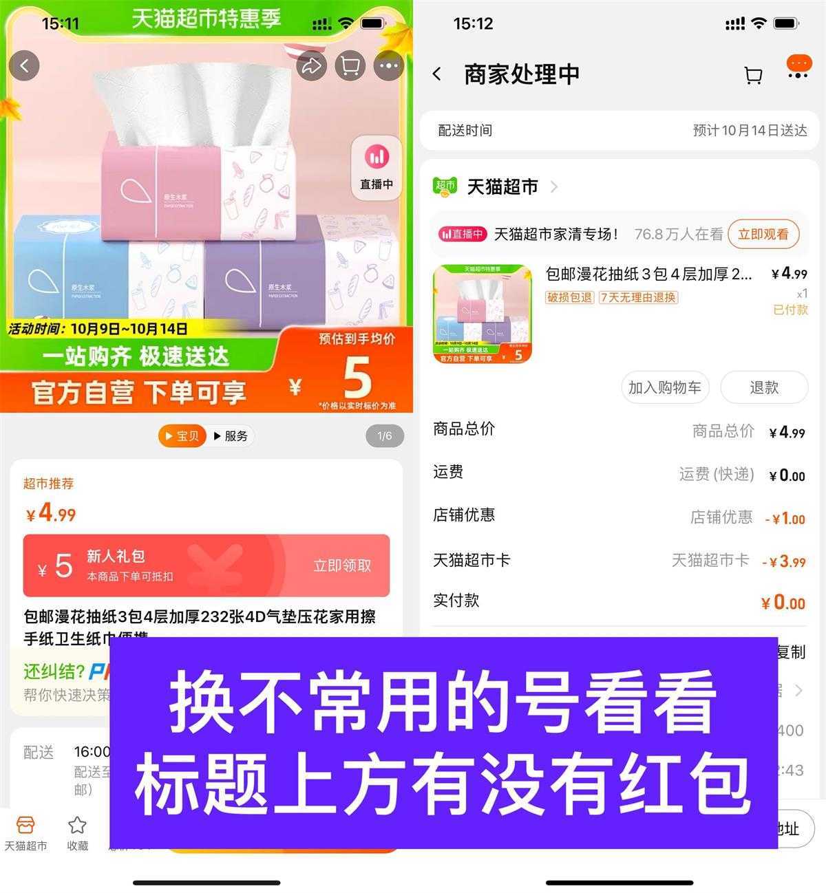 看看标题上方有没有红包,有的话就代表可以撸!可以换号去看看,一般不常用的号都有!