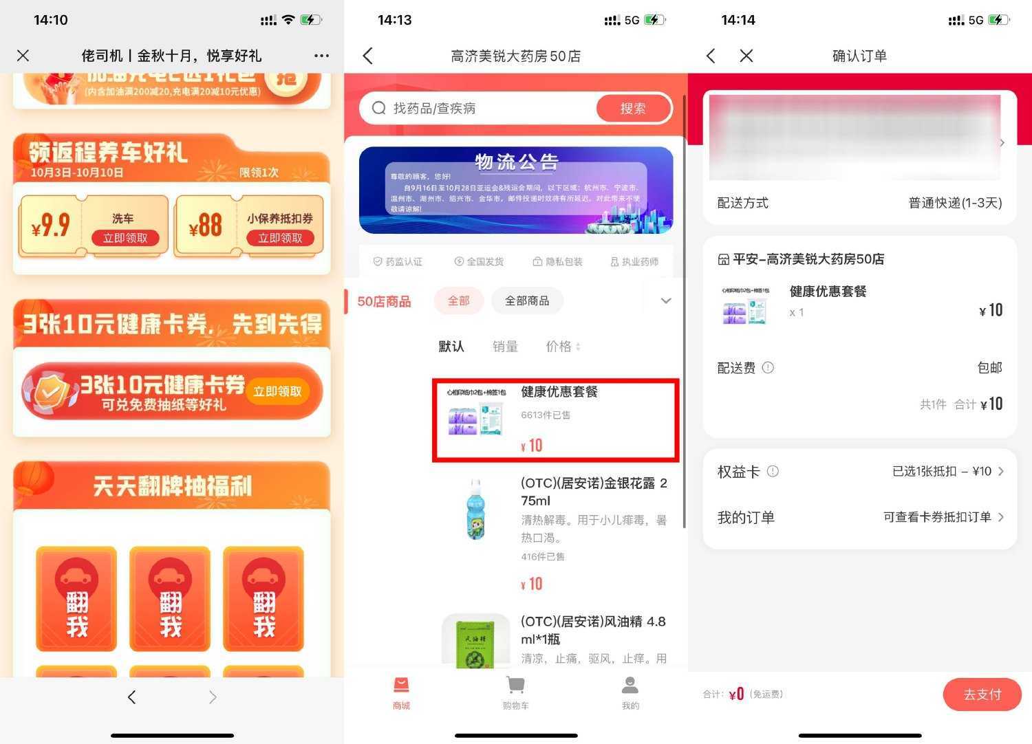 1、打开活动地址->下拉领3张10元卡券->下载平安好车主APP