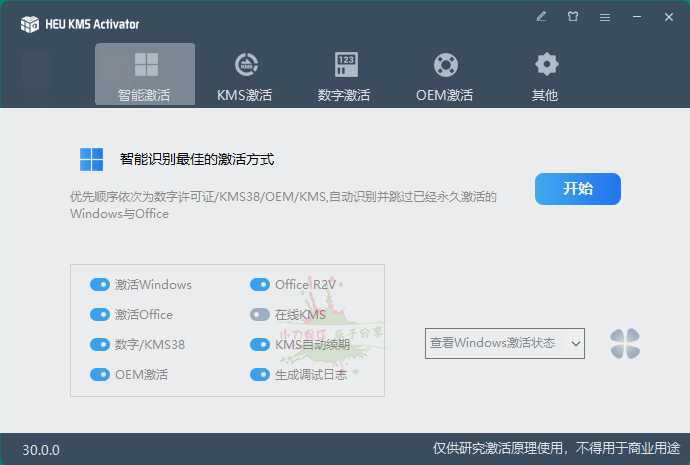7、智能激活、激活成功率高、支持静默参数、几乎支持所有 Windows/Office 所有版本