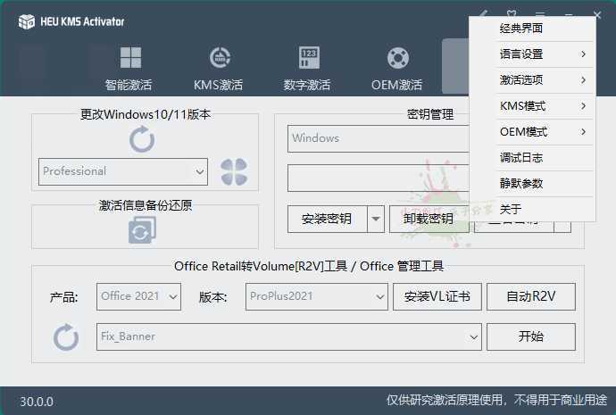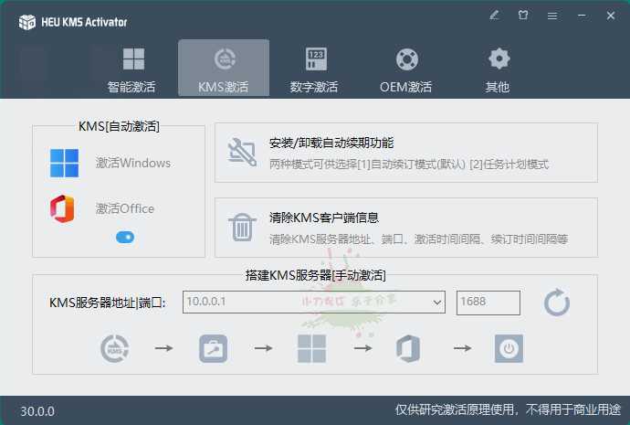 HEU KMS Activator,简洁高效的全能KMS/OEM激活工具,适用所有Windows, Office版本,无需联网即可一键激活,支持UEFI的KMS激活工具。KMS服务是微软对Windows, Office等产品的批量许可服务,利用KMS可以激活局域网内的产品。该工具利用KMS机制在系统搭建KMS服务器,从而实现在线或离线激活。