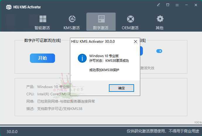 查看当前系统信息:网络状态/激活状态,描述便于快速查看是否支持数字许可证/KMS38
