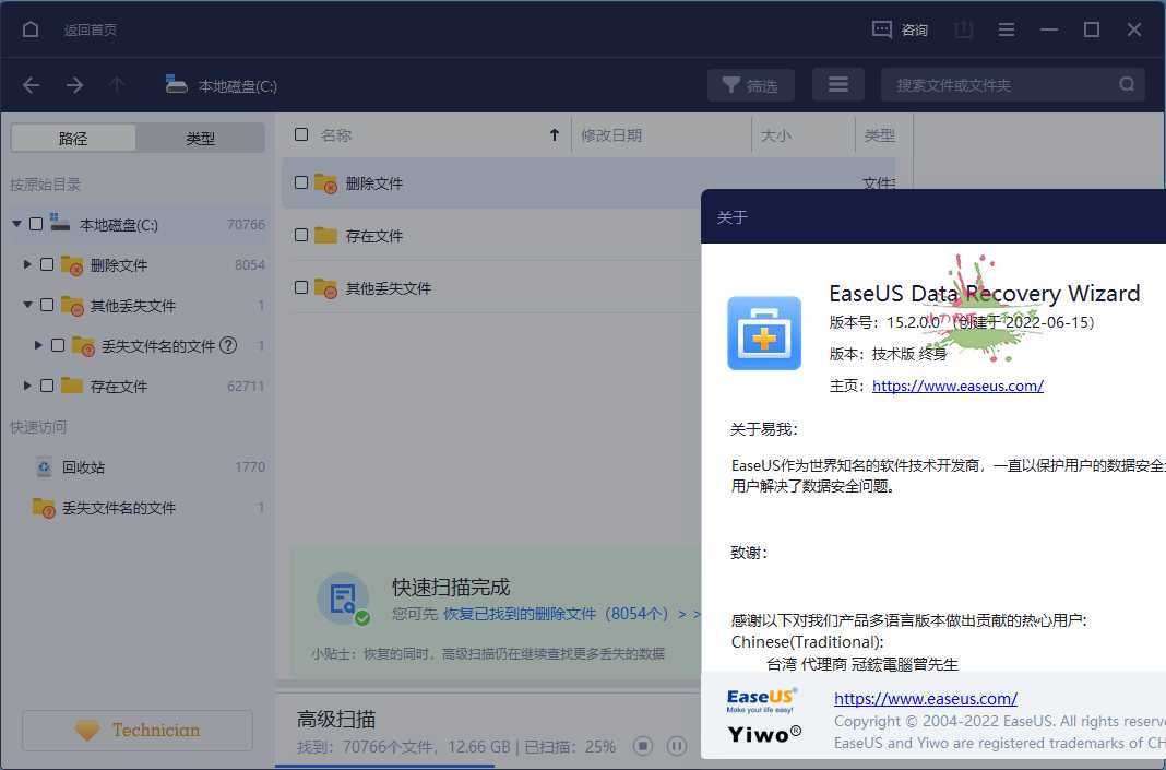 EaseUS Data Recovery Wizard中文版技术版(易我数据恢复向导)是中国成都易我科技推出的海外版,易我数据恢复软件为全球提供数据恢复方案,用于误删数据数据,电脑误删文件恢复,格式化硬盘数据恢复,手机U盘数据恢复等,RAID磁盘阵列数据恢复,分区丢失及其它未知原因丢失的数据恢复,简单易用轻松搞定数据恢复.