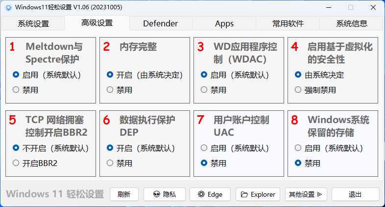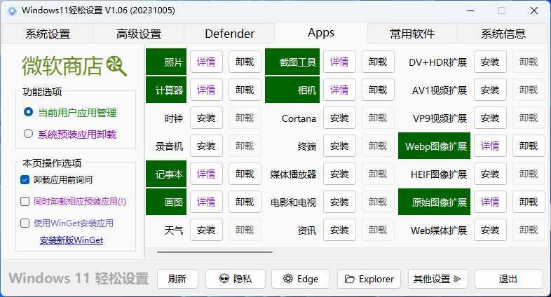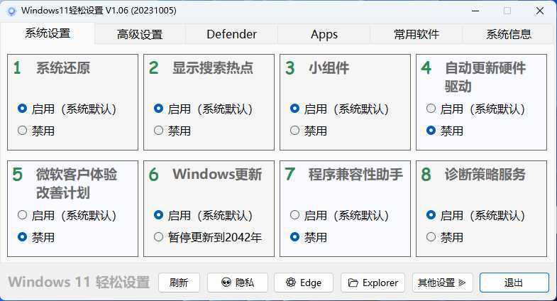 Win11轻松设置软件是一款免费无广告专门为Windows 11系统设计的工具软件,即开即用,具有多种特色功能和亮点。通过界面简洁、个性化定制、一键优化等功能,可以更加便捷地进行系统设置和管理。由于整合了实用的常用功能,故无需使用多种小工具即可完成绝大部分的优化调整。