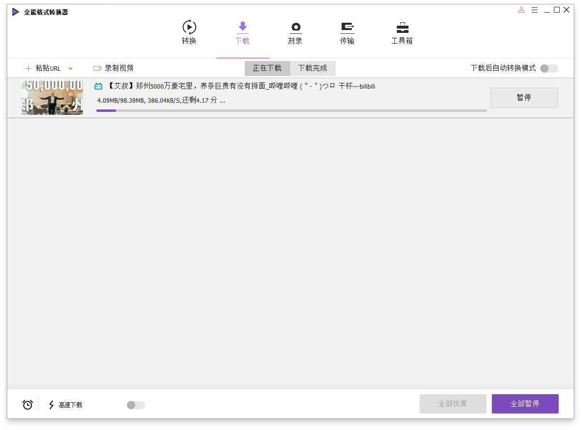 预设配置:默认中文、启用高速转换、高速下载、GPU硬件加速