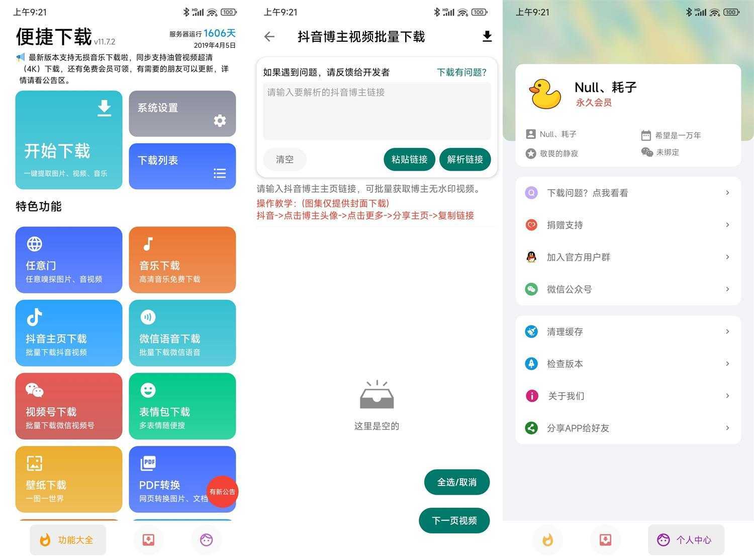 便捷下载是一款方便大家批量下载图片、视频、音频、文档的下载工具,操作非常简单,只需要复制链接,就可以轻松完成下载,还支持音视频提取,视频压缩,视频封面修改,视频MD5替换,任意网页一键转换PDF,氢壁纸制作,图文卡片制作,头像/壁纸下载,微信语音提取等功能,作者虽然很胖,但App却很小。