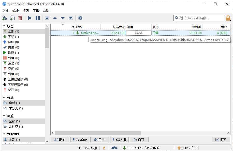 基于原版qBittorrent重编译,主要特色:自动屏蔽迅雷等BT下载工具吸血