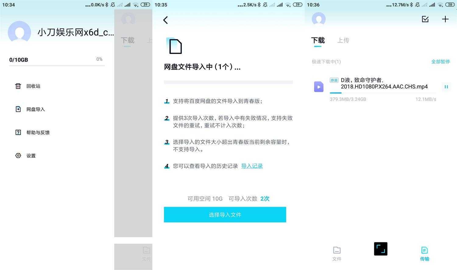 百度网盘青春版,不再限制上传及下载速度,可与百度网盘同一账号、同一设备登录。支持从原版百度网盘导入文件,可用空间为10GB,支持导入3次。