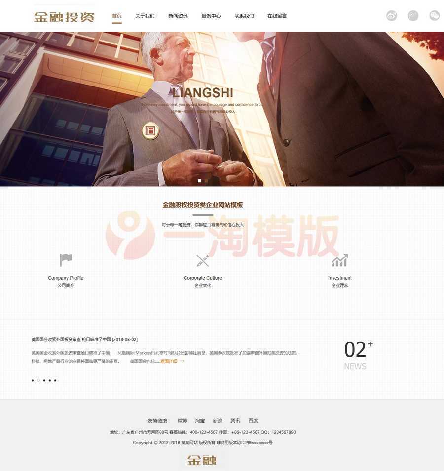 易优CMS金融股权投资类企业网站模板,EyouCMS金融行业类企业网站模板。适用于金融、投资、保险理财类企业网站开发使用。模板自带eyoucms内核,无需再下载eyou系统,原创设计、手工书写DIV+CSS,完美兼容IE7+、Firefox、Chrome、360浏览器等;主流浏览器;结构容易优化;多