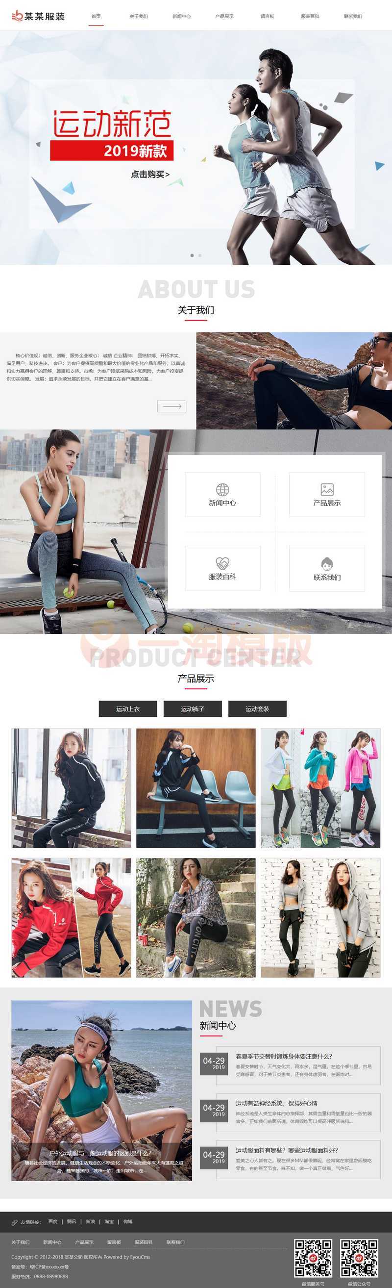 易优CMS响应式品牌运动服装网站模板,EyouCMS服装服饰类企业网站模板。适用于服饰、箱包、礼品、玩具类企业网站开发使用。