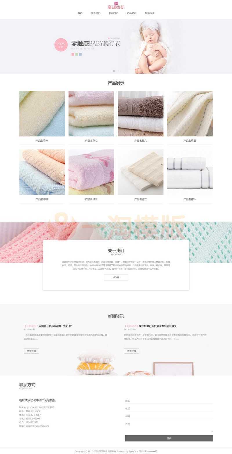 易优CMS响应式家纺毛巾浴巾网站模板,EyouCMS服装服饰类企业网站模板。适用于服饰、箱包、礼品、玩具类企业网站开发使用。