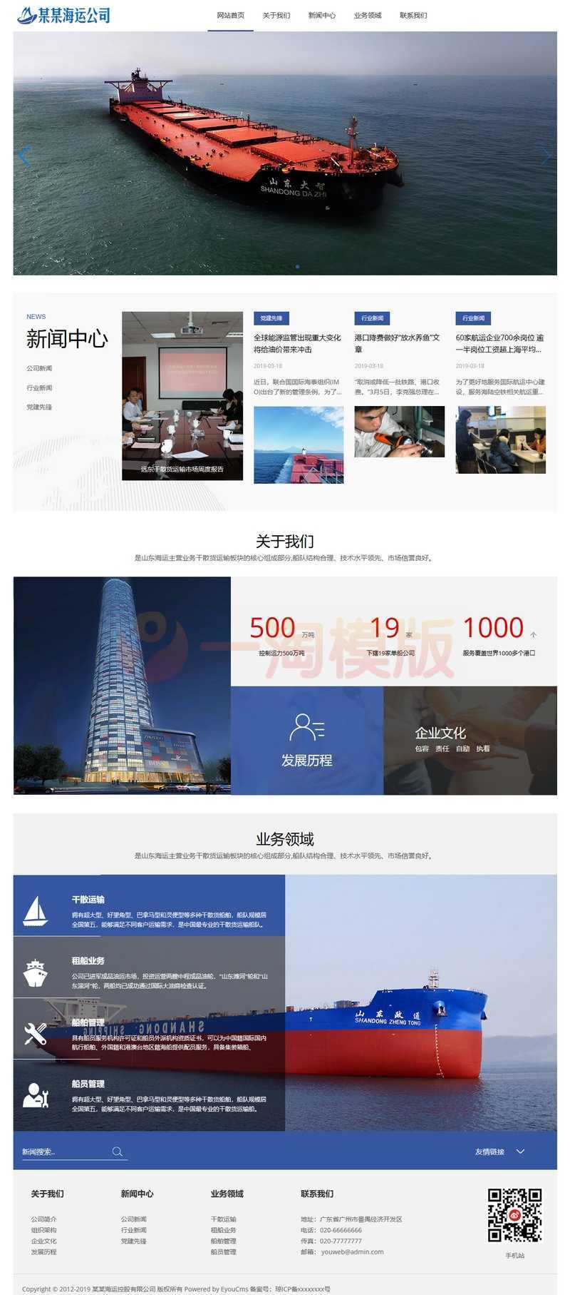 易优CMS响应式海运船舶控股类网站模板,EyouCMS汽车相关类企业网站模板。适用于汽车、汽配、交通、物流类企业网站开发使用。模板自带eyoucms内核,无需再下载eyou系统,原创设计、手工书写DIV+CSS,完美兼容IE7+、Firefox、Chrome、360浏览器等;主流浏览器;结构容易优化