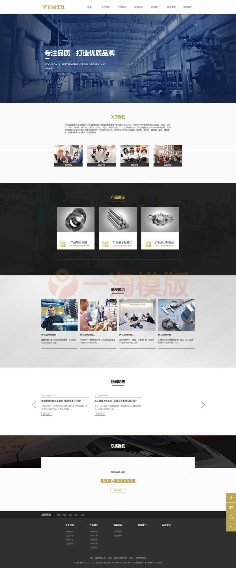易优CMS机械零件配件类网站模板,EyouCMS机械设备类企业网站模板。适用于五金、设备、制造、仪器类企业网站开发使用。