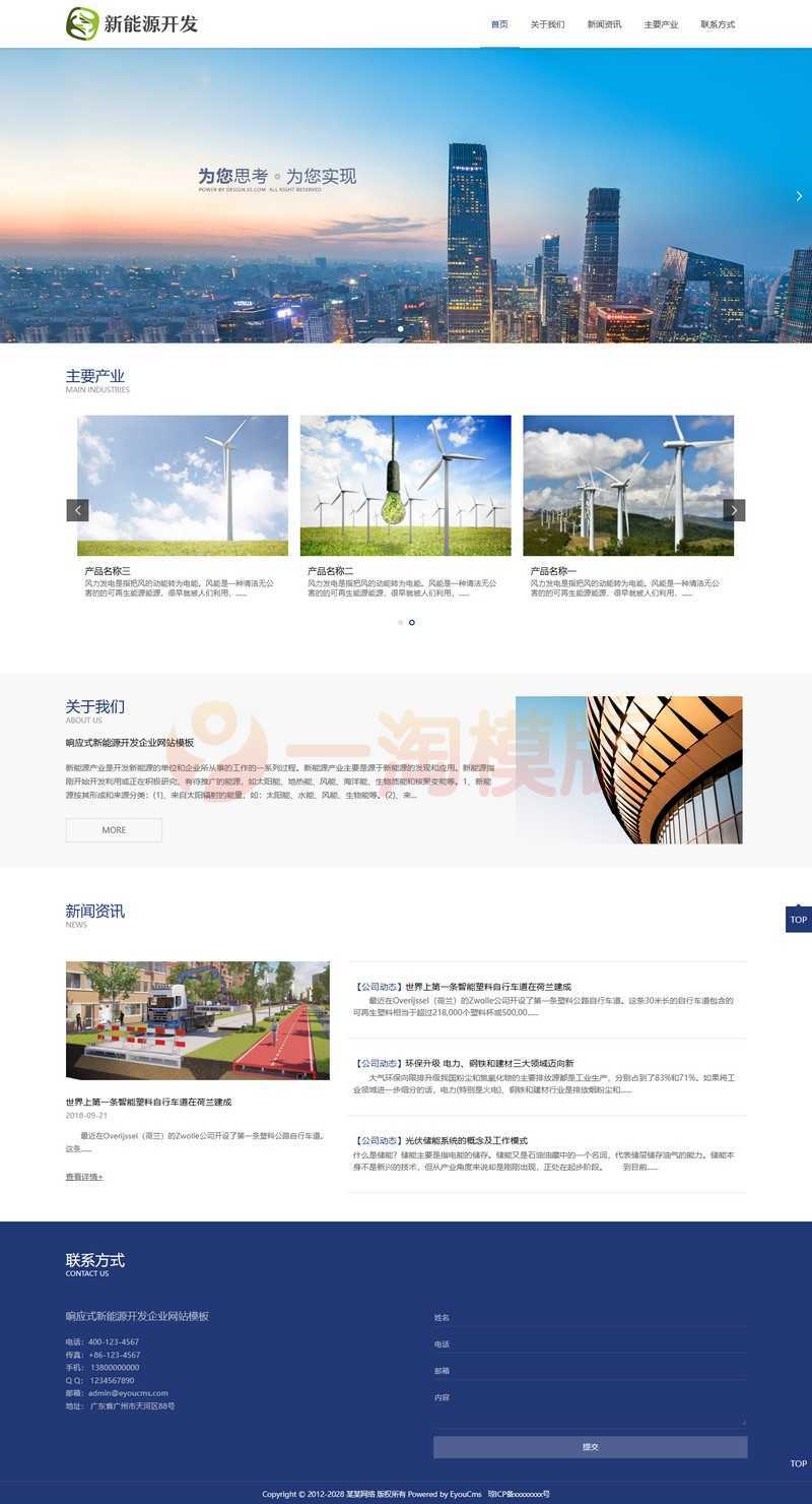 易优CMS响应式新能源开发企业网站模板,EyouCMS能源类企业网站模板。适用于IT、软件、互联网、游戏类企业网站开发使用。