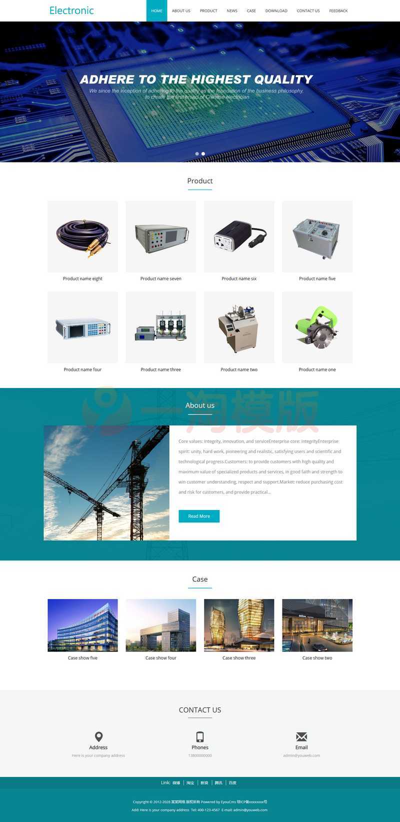易优CMS响应式电子元件外贸英文网站模板,EyouCMS多语言类企业网站模板。适用于营销、外贸、商城、双语类企业网站开发使用。模板自带eyoucms内核,无需再下载eyou系统,原创设计、手工书写DIV+CSS,完美兼容IE7+、Firefox、Chrome、360浏览器等;主流浏览器;结构容易优化