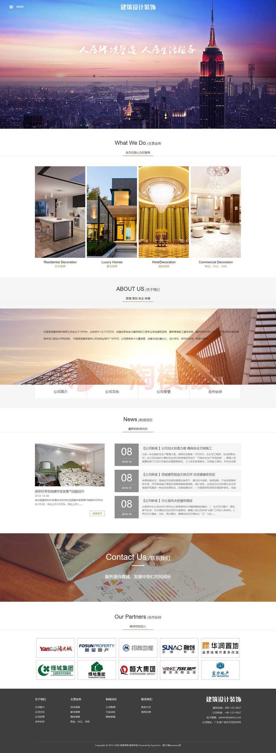 易优CMS响应式建筑设计装饰网站模板,EyouCMS建筑施工类企业网站模板。适用于基建、施工、地产、物业类企业网站开发使用。