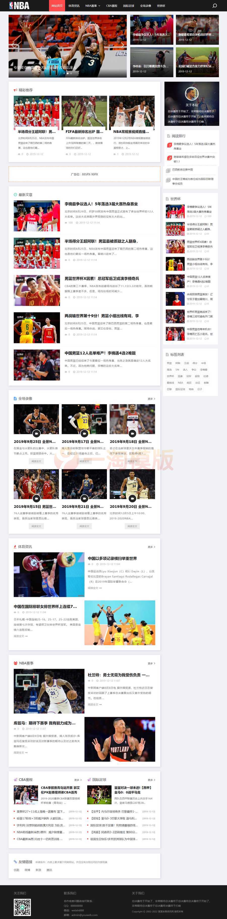 EyouCMS响应式NBA体育赛事资讯模板,易优CMS博客类企业网站模板。适用于博客、文章、资讯类网站模板开发使用。