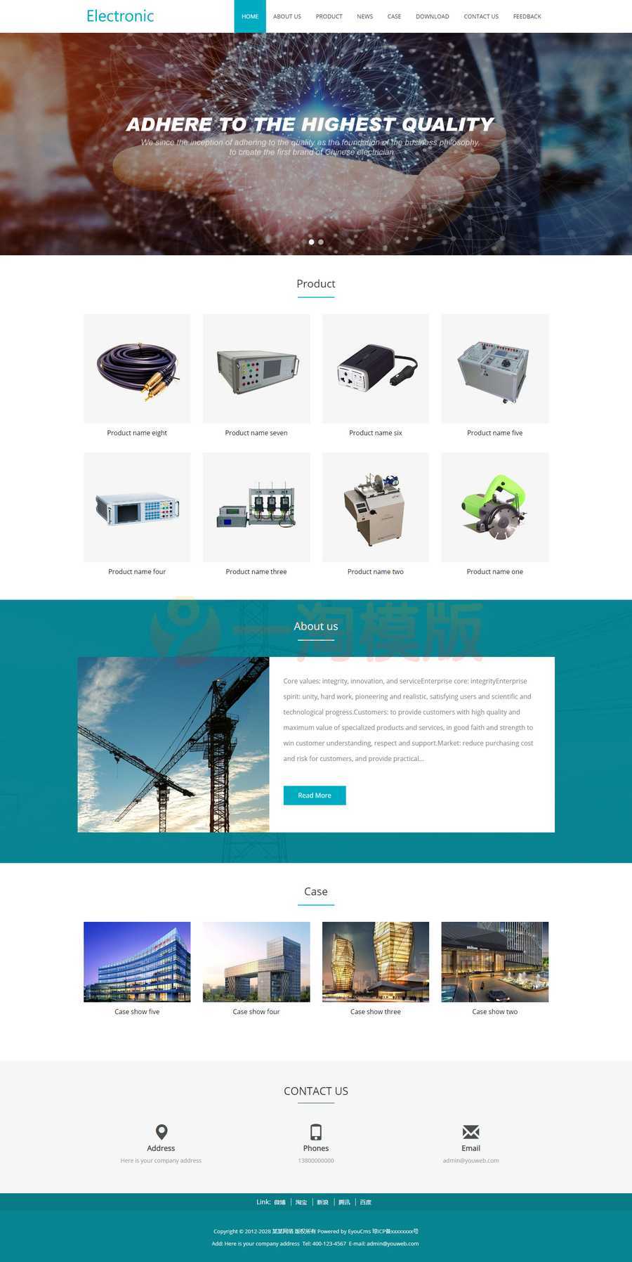 EyouCMS电子元件外贸网站模板,易优CMS响应式英文网站模板。适用于外贸类企业网站开发设计使用。模板自带eyoucms内核,无需再下载eyou系统,原创设计、手工书写DIV+CSS,完美兼容IE7+、Firefox、Chrome、360浏览器等;主流浏览器;结构容易优化;多终端均可正常预览。