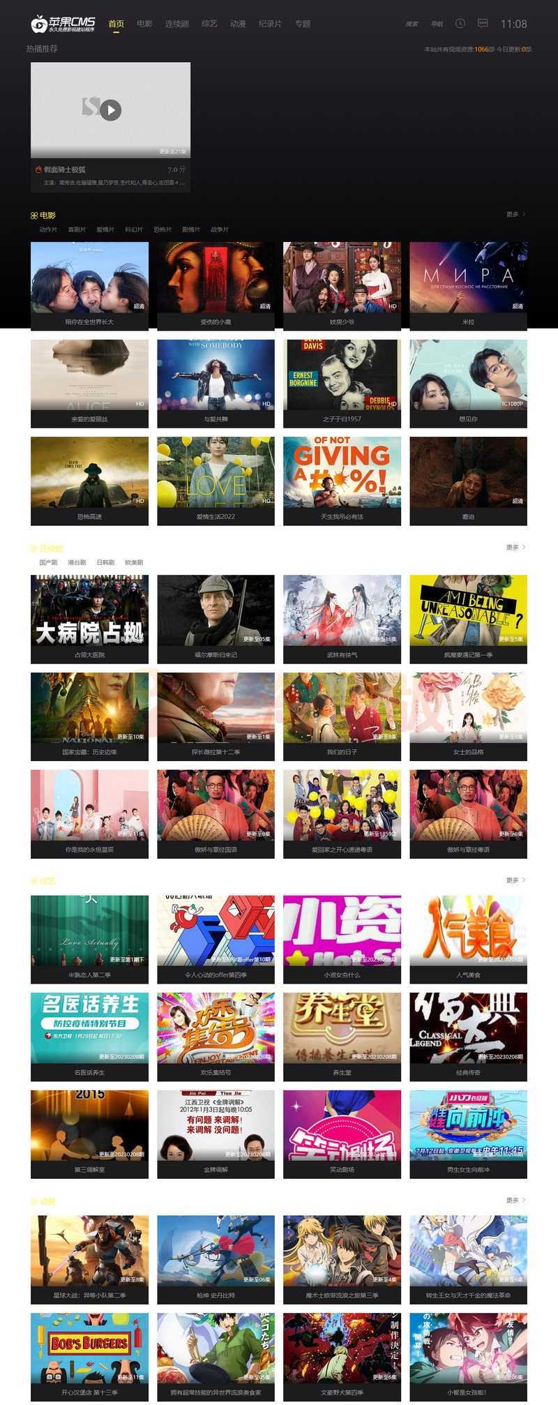 苹果cms10一款酷黑视频站模板 整个布局以黑色为主 用户在下滑或是上调页面时具有颜色由深变浅或浅变深的颜色渐变功能!完美自适应所有市面上的电子视频设备。还有触动封面直接播放视频内容的独特设计 为你的广告收益大大提供了更直接的功能。还在播放器右侧增加了选集模块功能 集成了推荐影片和下载,物超所指值得入手的一款视频模板!还有很多特色小功能等你慢慢体会发现!