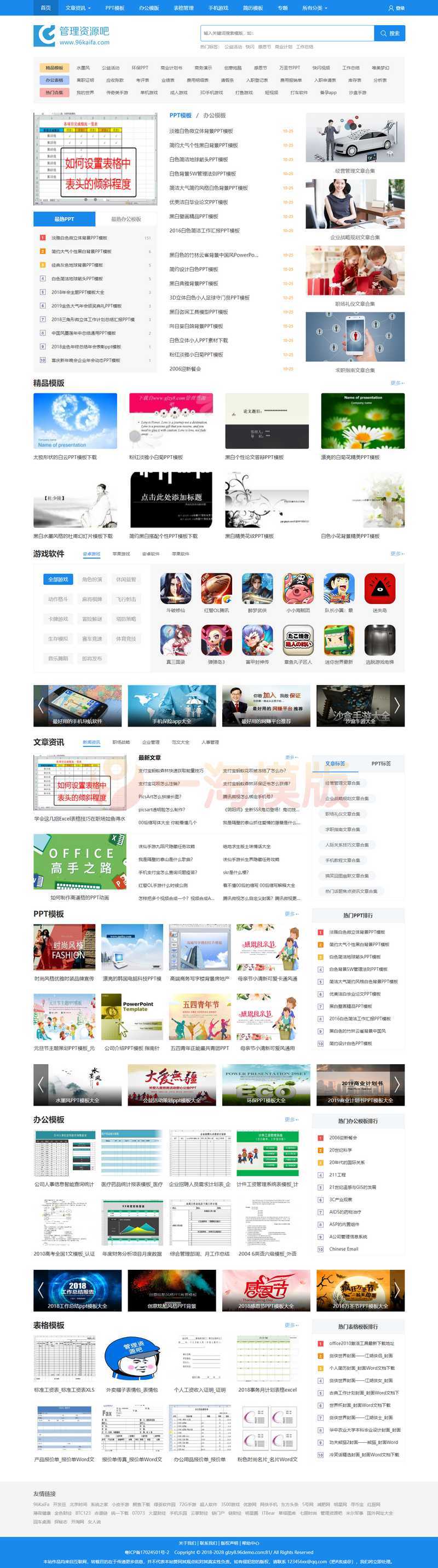 开发环境:帝国cms7.5空间支持:php+mysql帝国cms7.5仿资源管理吧 资源下载网站整站下载,为中小企业管理者提供全方位的管理资料下载服务;是一个所有资料免费下载,免注册、免登陆、免积分的公益性的管理知识共享平台。此站风格挺漂亮的,面向国内庞大办公用户群体的资源类网站,都是不差钱的,发展
