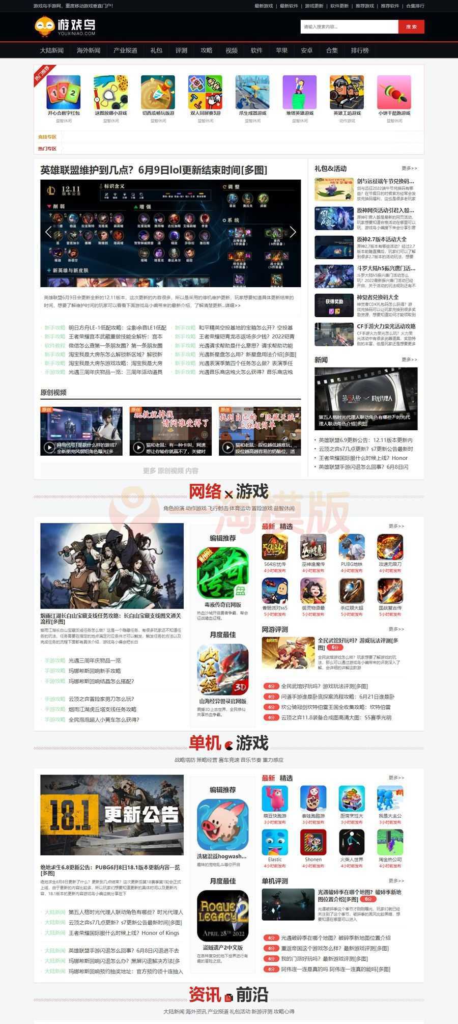 首页>源码/模板>帝国CMS>帝国CMS仿《游戏鸟》模板源码/92kaifa版大型手机游戏门户网站模板