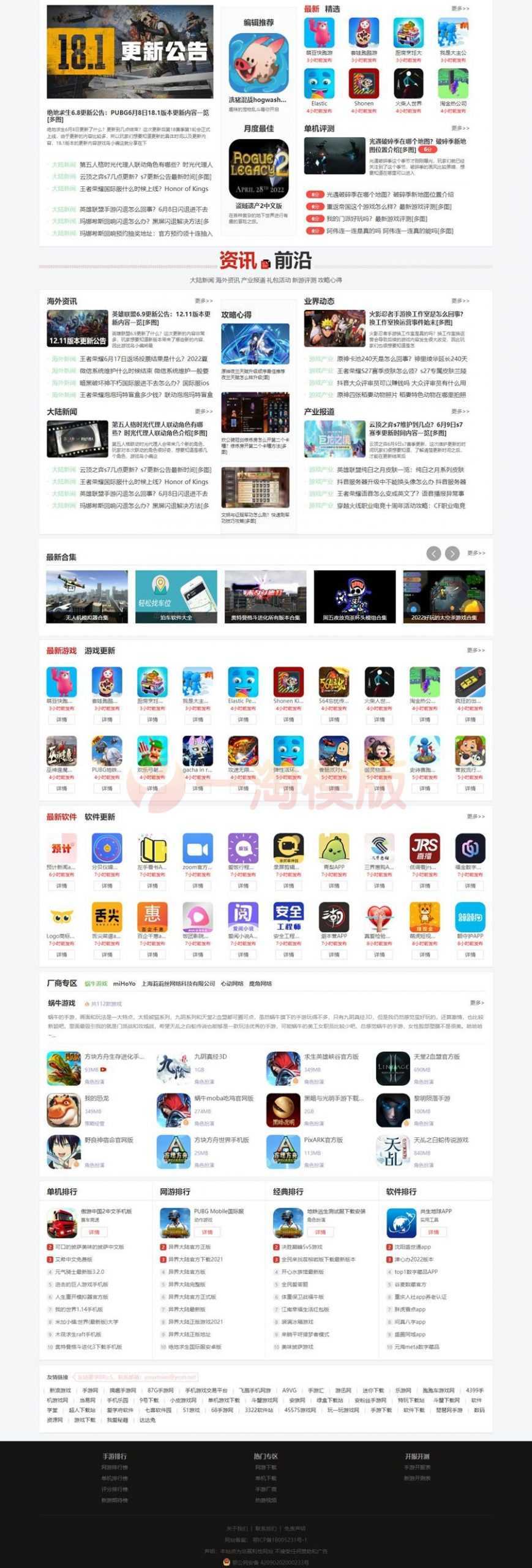 帝国CMS仿《游戏鸟》模板源码,92kaifa版APP下载类整站源码。手机游戏门户网站模板,大型手游门户网站模板。支持PC与手机端同步生成html,需多端同步生成插件。PS:图片数据已清空,所以搭建后首页错位,填充数据后会恢复正常!!