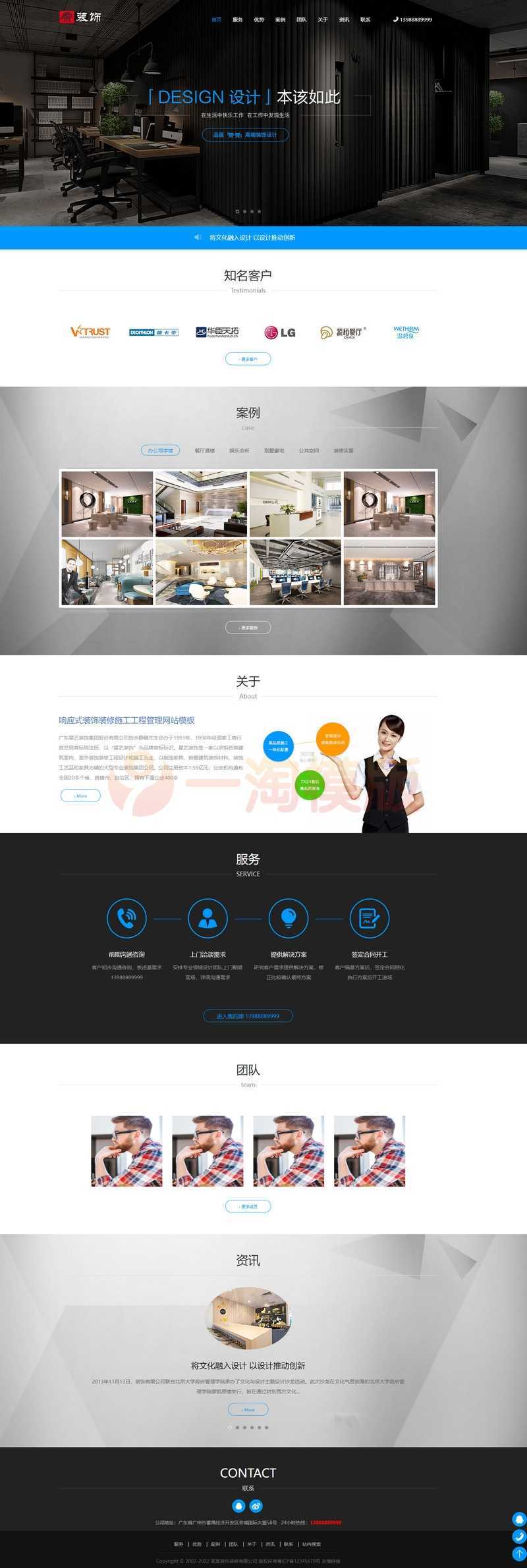 易优CMS响应式装饰装修施工工程管理网站模板,EyouCMS装修类企业网站模板。适用于建材、家居、家具、电器类企业网站开发使用。模板自带eyoucms内核,无需再下载eyou系统,原创设计、手工书写DIV+CSS,完美兼容IE7+、Firefox、Chrome、360浏览器等;主流浏览器;结构容易优