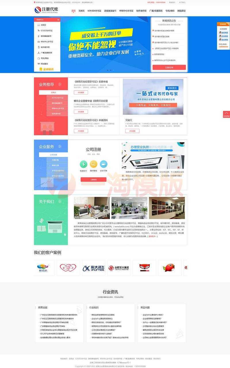 易优CMS运营工商资质注册办理类网站模板,EyouCMS财务类企业网站模板。适用于财务、管理、法律、政府类企业网站开发使用。