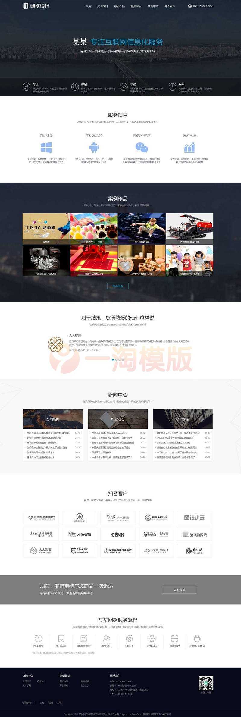 易优CMS互联网信息化服务网站模板,EyouCMS互联网类企业网站模板。适用于IT、软件、互联网、游戏类企业网站开发使用。