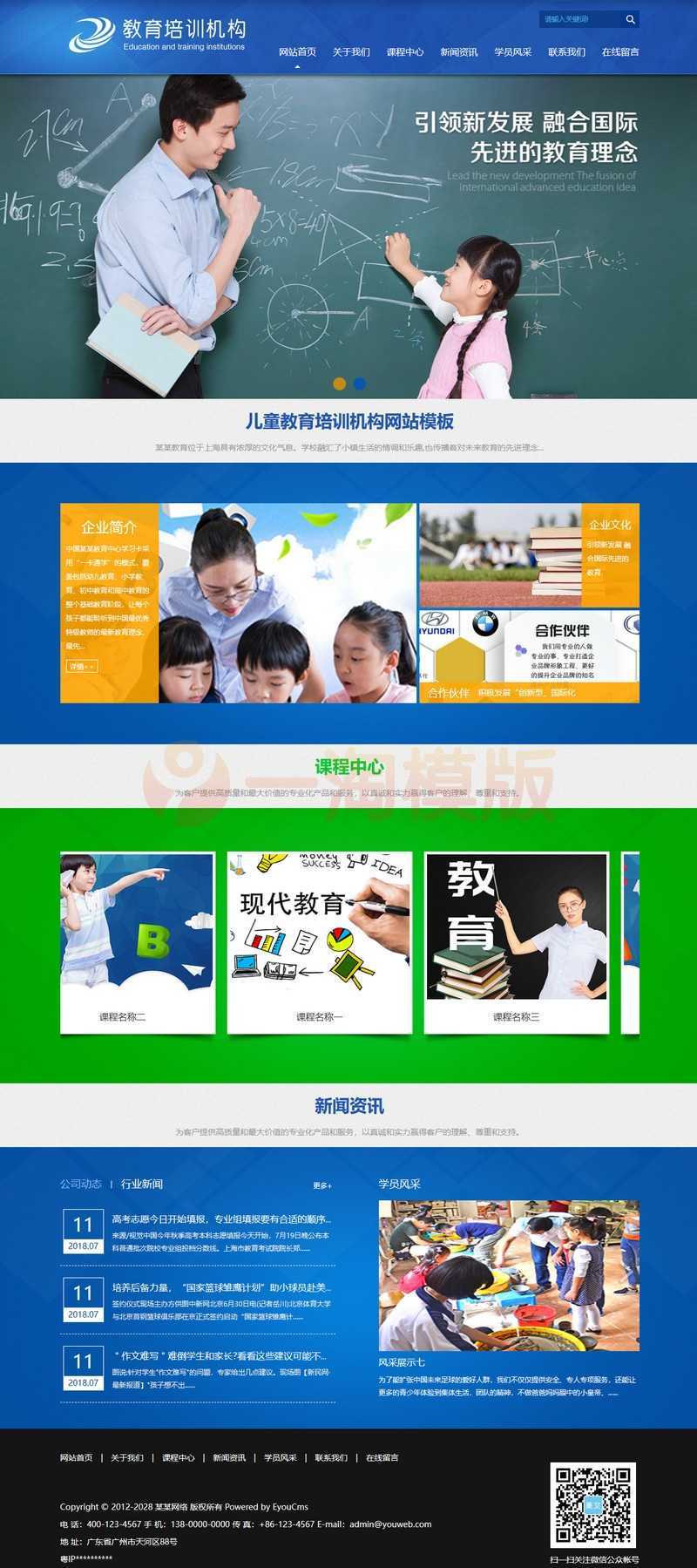 易优CMS儿童教育培训机构网站模板,EyouCMS培训机构类企业网站模板。适用于学校、教育、培训、科研类企业网站开发使用。