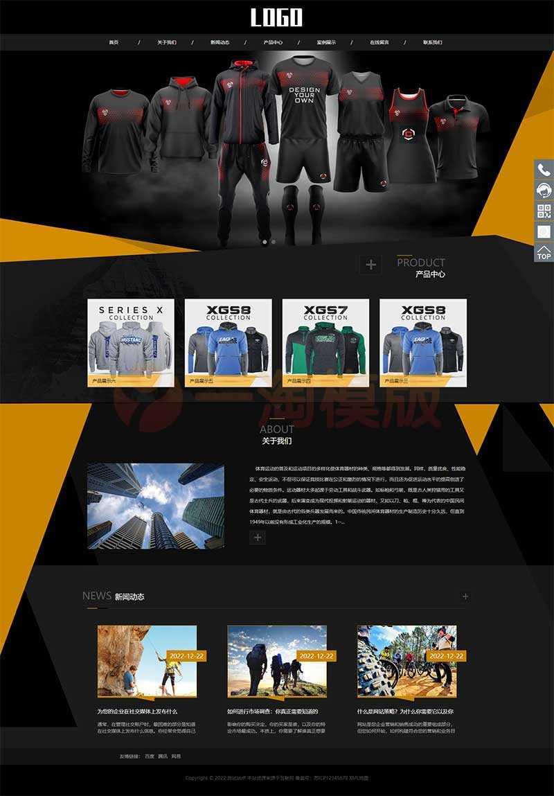 响应式户外运动设备类网站pbootcms模板,体育运动服装网站源码下载。